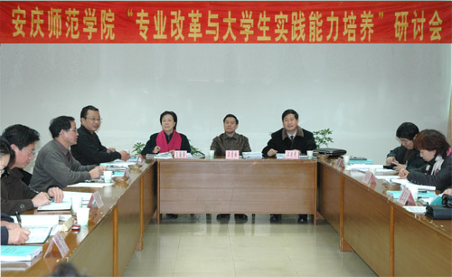 为促进专业改革建设,落实教育部提出的重视大学生实践能力培养的方针,1月12日,由永利官网教务处组织举办了“安庆师范学院专业改革与大学生能力培养研讨会”和“实践课基本要求审定会”。院长汪青松教授,副院长王海燕教授出席会议。