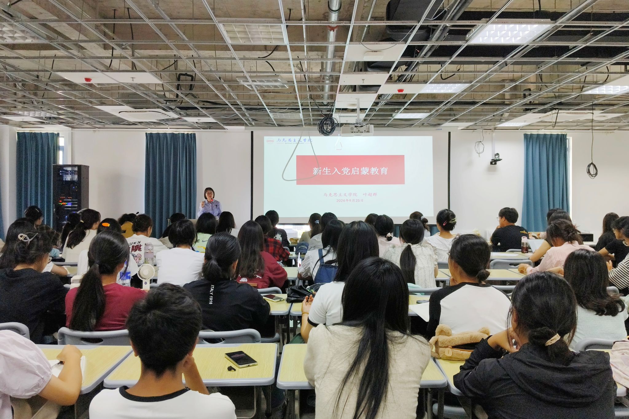 9月25日,马克思主义学院开展新生入党启蒙教育,马克思主义学院党委秘书作专题宣讲,全体马克思主义学院2024级新生参加。