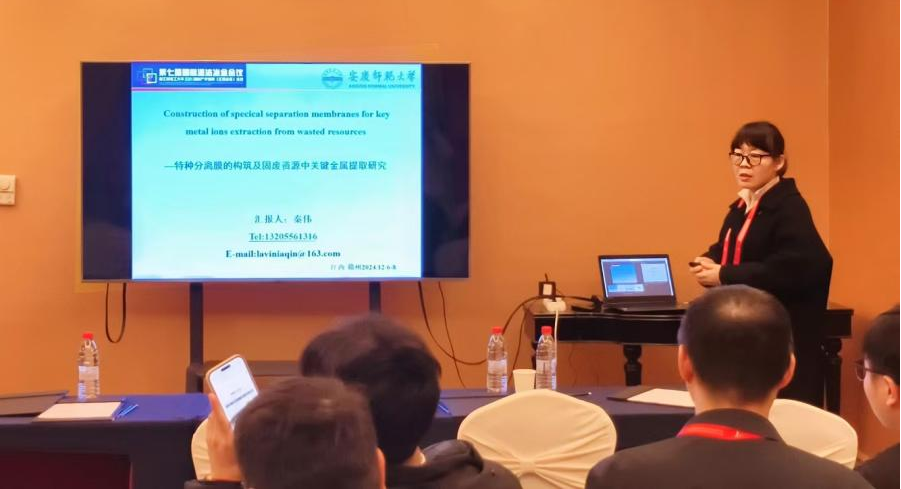 会上,化学化工学院秦伟教授作题为“特种分离膜的构筑及固废资源中关键金属提取”的专题报告,展示了学院在金属冶炼污染控制领域的最新研究成果,引发与会专家学者热烈反响。
