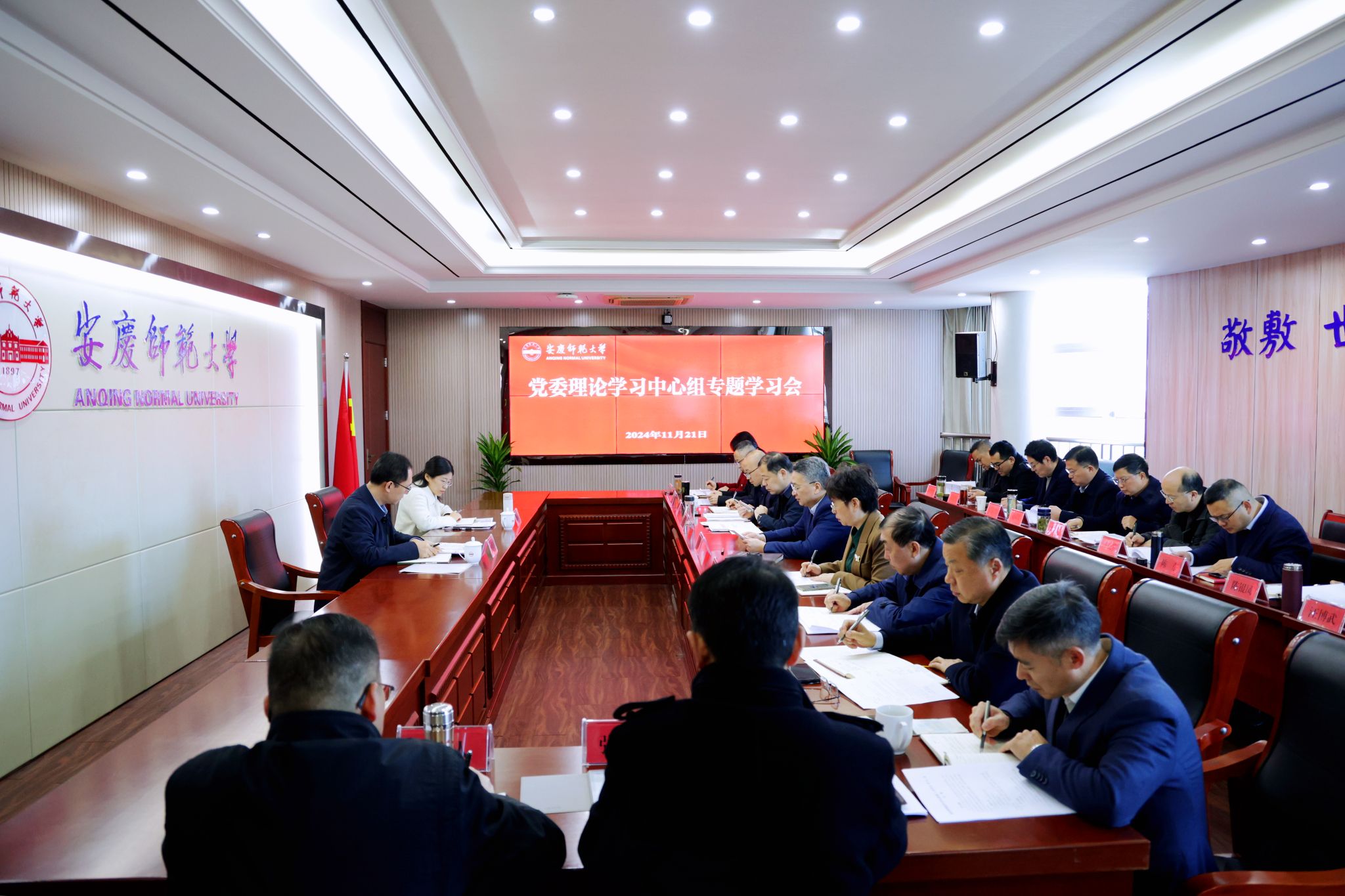 11月21日,学校党委理论学习中心组召开专题学习会议,深入学习习近平总书记考察安徽重要讲话精神,学习习近平总书记在省部级主要领导干部学习贯彻党的二十届三中全会精神专题研讨班开班式上的重要讲话精神和主持中共中央政治局第十七次集体学习时的重要讲话精神、致中山大学建校100周年贺信。校党委书记李福华主持会议,省委教育工委派员列席旁听。