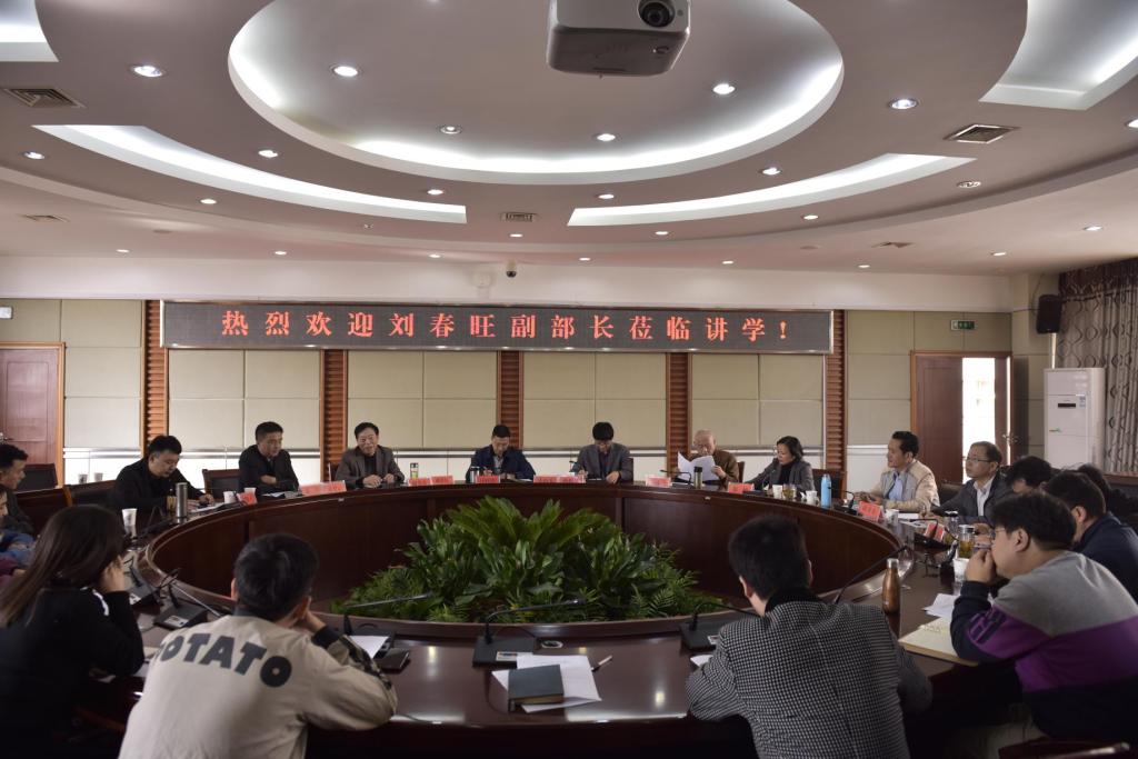 11月10日上午,安庆市委宣传部常务副部长刘春旺在龙山校区为永利官网2019级艺术(戏曲)硕士点师生作了题为“黄梅戏传承的几个问题”的学术报告。报告会由黄梅戏艺术发展研究中心主办,科研处、黄梅剧艺术学院联合承办,校党委常委、副校长汪时珍出席报告会。