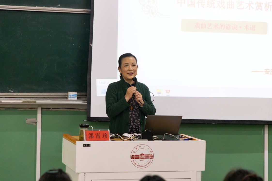 郭老师最后总结道,戏曲的谚诀术语是一扇门,背后是精湛的东方艺术;戏曲的谚诀术语是一本书,讲述着古老而美丽的东方故事。郭老师在讲座中还结合自己的从艺经历提醒同学们,学戏是不断积累的过程,更是立德修身的过程,只有修大德,才能成大家!本次讲座极大鼓舞了学生们投身戏曲传承事业的决心,也让同学们懂得戏曲背后所蕴含的文化魅力与中国智慧。(撰稿:程蓉 摄影:谢良铨 审核:储著炎)