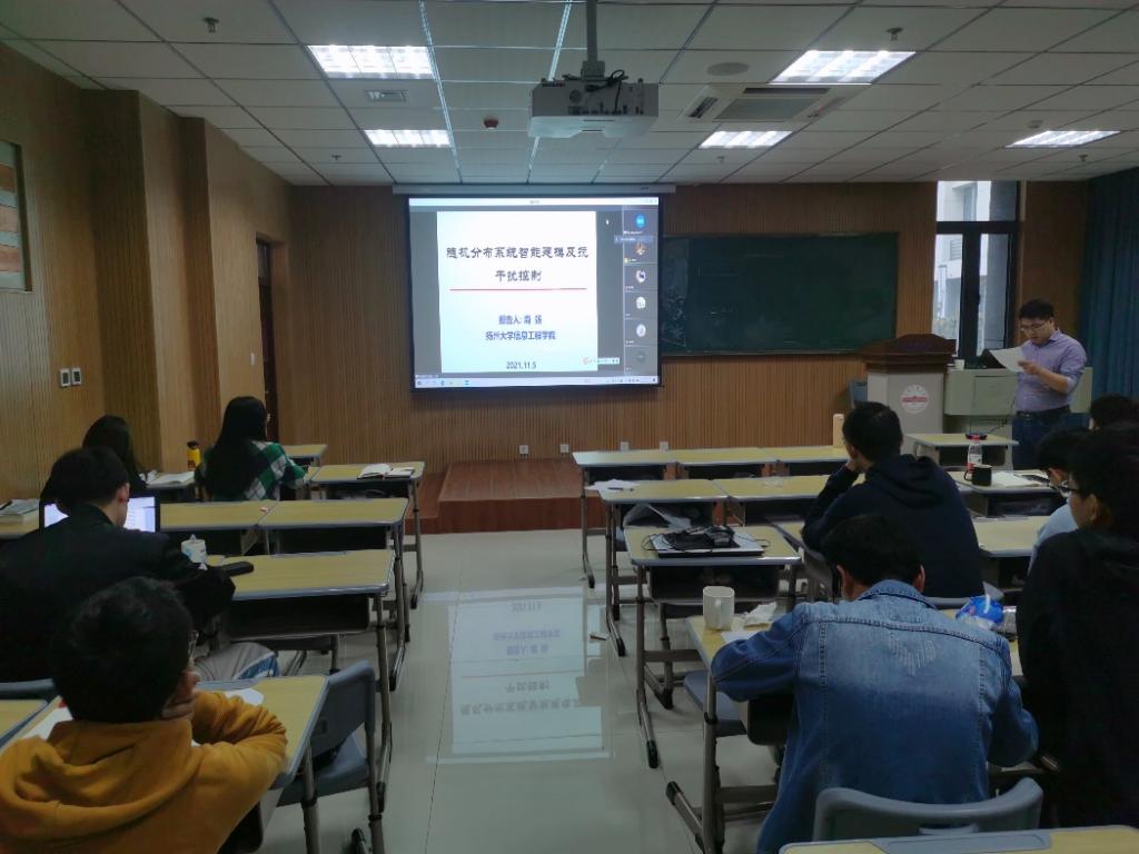 报告会上,裔扬教授首先针对受扰随机分布控制系统,介绍了复杂系统建模以及抗干扰约束控制等问题,将动态过程性能指标或者状态的概率密度函数(PDF)作为研究目标和对象,设计时间函数来控制随机系统输出PDF的形状。接着介绍了其团队近年来所作的主要工作。最后鼓励大家要打好基础、学习新技术、尝试新领域,开拓视野,积极探索,争取成为科技创新的领先者。
