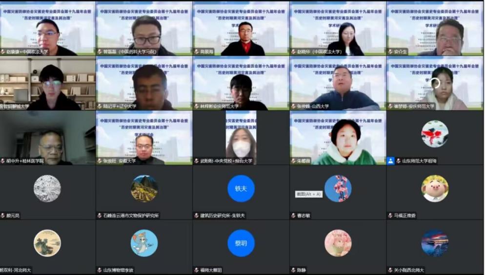 12月3日至4日,中国灾害防御协会灾害史专业委员会第十九届年会暨“历史时期黄河灾害及其治理”学术研讨会在山东师范大学成功召开。会议由中国灾害防御协会灾害史专业委员会、山东师范大学历史文化学院、中国人民大学清史研究所暨生态史研究中心、中国水利水电科学研究院水利史研究所、中国可持续发展研究会减灾与公共安全专业委员会等多家单位共同举办。会议以线上、线下相结合的方式举行,中国人民大学、复旦大学和中国水利水电科学研究院等多名专家学者和研究生参会,永利官网人文学院硕士研究生林梓彬、崔梦婷应邀参会。人文学院教授张祥稳担任主题为“灾害与人类可持续发展”的专家学者第六组分场报告会的评议人。