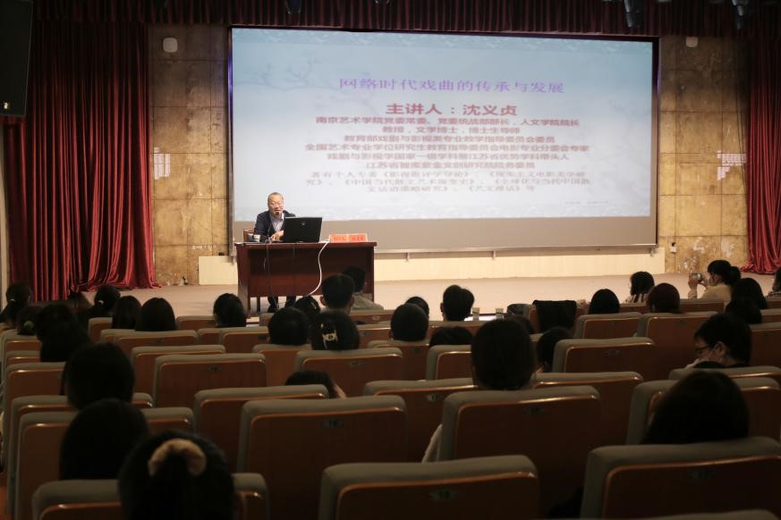 10月22日上午,应黄梅剧艺术学院邀请,南京艺术学院沈义贞教授在菱湖校区图书馆一楼报告厅作了一场题为“网络时代戏曲的传承和发展”学术讲座。黄梅剧艺术学院全体本科生,艺术(戏曲)专业研究生和部分教师加了讲座。讲座由黄梅剧艺术学院储著炎副院长主持。