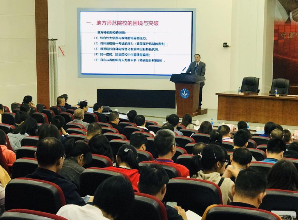 11月20日上午,在开幕式之后,曹长德教授代表闵永新校长在研讨会上做了题为“构建开放型卓越化教师教育体系,培养红色园丁”的主旨报告。报告主要包括四个方面的内容:一是地方师范院校的困境与突破;二是永利yl23411no1教师教育发展的历程;三是永利yl23411no1教师教育开放型卓越化教师教育体系的构建,主要从“夯实师德养成体系”,“优化学科课程体系”“锻造实践训练体系”,“构建协同培养体系”,“健全保障服务体系”等五个方面进行构建;四是永利yl23411no1“红色园丁”项目的内容与实施,是从建立“大别山革命老区高校联盟”,开发红色教育资源,开展“红色铸魂”“红色筑梦”主题教育活动和“对大别山革命老区中小学实施持续帮扶活动”三个方面开展的。该报告得到参会代表的高度评价,被誉为“安庆师大经验”。