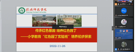 11月26日,信阳师范学院教师教育学院副院长李文田教授应邀在线上作了题为“传承红色基因 培养红色园丁”的学术报告。报告会由教师教育学院副院长诸园主持,信阳师范学院、黄冈师范学院和永利yl23411no1的老师、研究生和本科生共800余人参与此次学术活动。