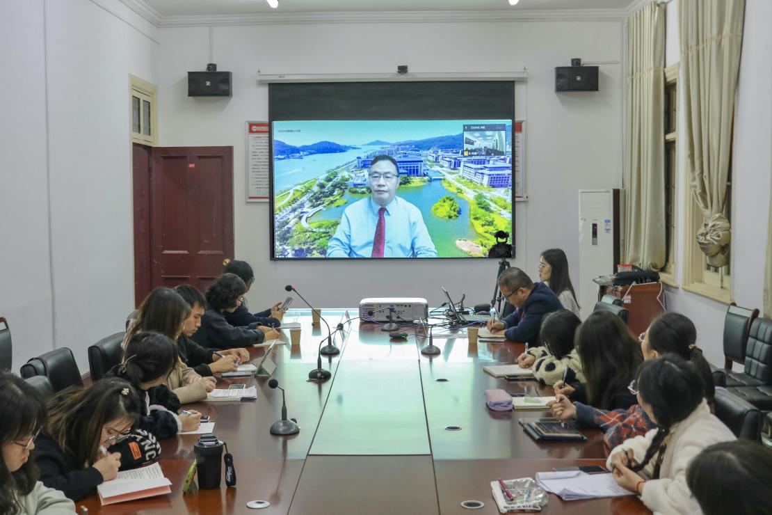 11月15日,敬敷人文讲坛第二十二讲在红楼二楼会议室顺利举行。澳门大学人文学院院长、博士生导师徐杰教授应邀作了题为“语种的数量和语言的能力”的线上讲座。讲座由副院长汪孔丰教授主持,鲍红教授、张莹副教授与谈。我院部分教师、研究生和本科生40余人参与了现场活动,线上有130余人聆听学习。