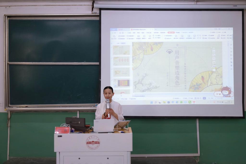 本次讲座是一次理论与实践相结合的“有声有色”的讲座,启智增慧,以美育人,以文化人,让在场的同学们了解到黄梅戏旦角唱腔的特点,以及如何通过声音塑造角色的方法与技巧,增强了同学们献身戏曲传承事业的信心与决心。(撰稿:徐越、谢良铨 摄影:徐越 审核:储著炎)