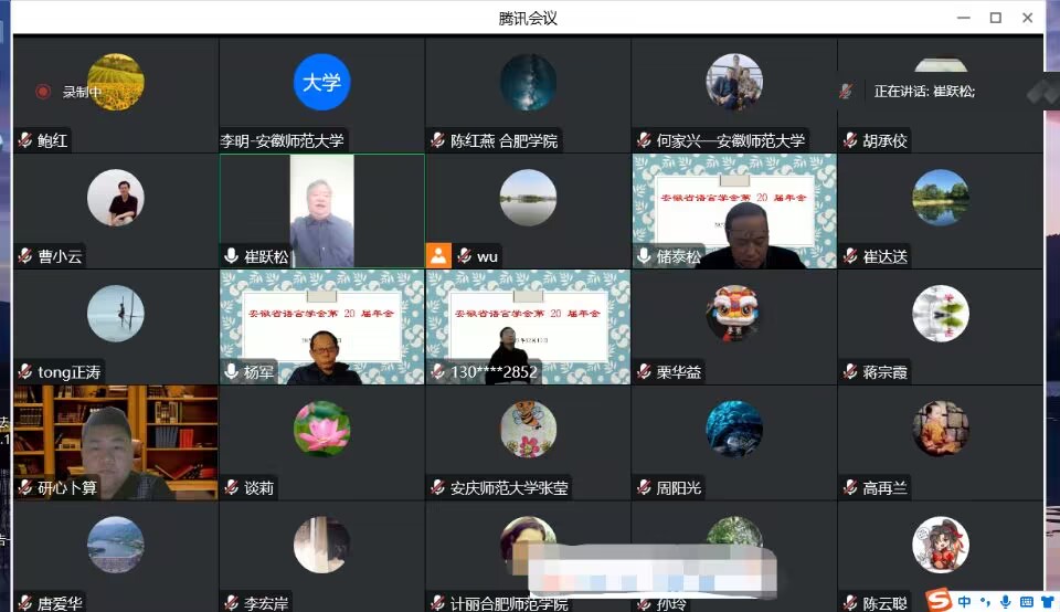12月10日,由安徽省语言学会主办、安徽大学承办的“安徽省语言学会第二十届年会暨换届大会”通过腾讯会议如期召开。来自省内外二十多所高校的50余名师生代表参加此次学术会议,并汇集论文50篇。永利官网人文学院硕士生导师鲍红教授、张莹副教授及两名硕士研究生应邀参加。