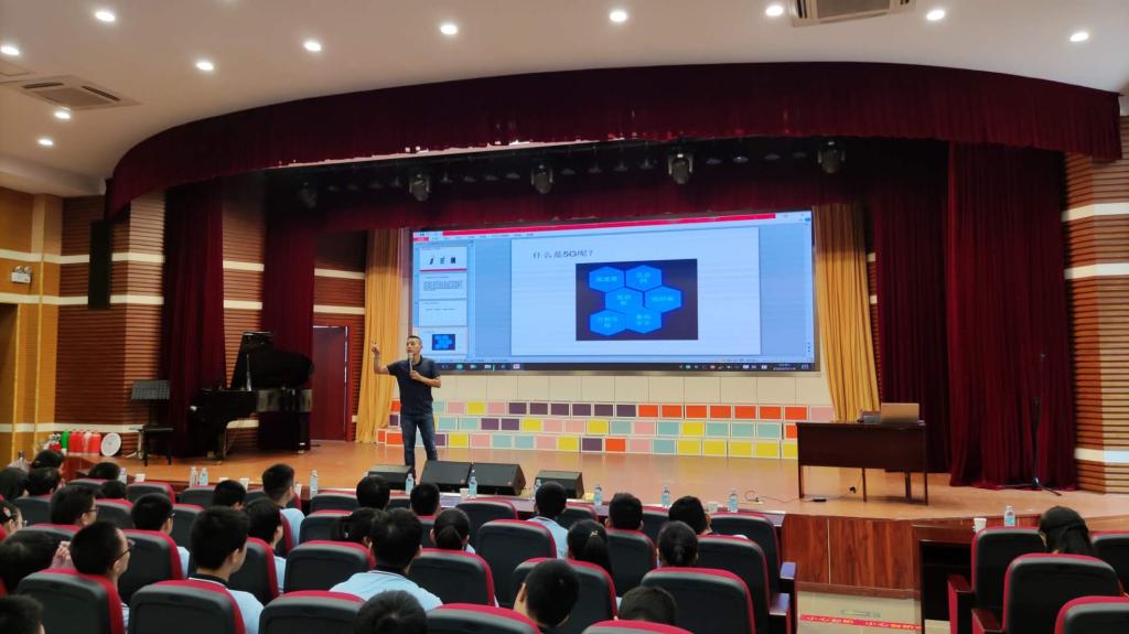 9月14日,九三学社安庆市委、安庆市科协联合举办的“百名专家进乡村学堂讲科普”活动在安庆十中举行。活动由安庆市科协副主席琚高祥主持,特邀王远志教授,作题为《关于5G的前世今生》专题科普报告。高一新生及相关教师约300人到场聆听,现场座无虚席。同时本次报告会作为2020年安庆市全国科普日活动启动仪式主题报告。