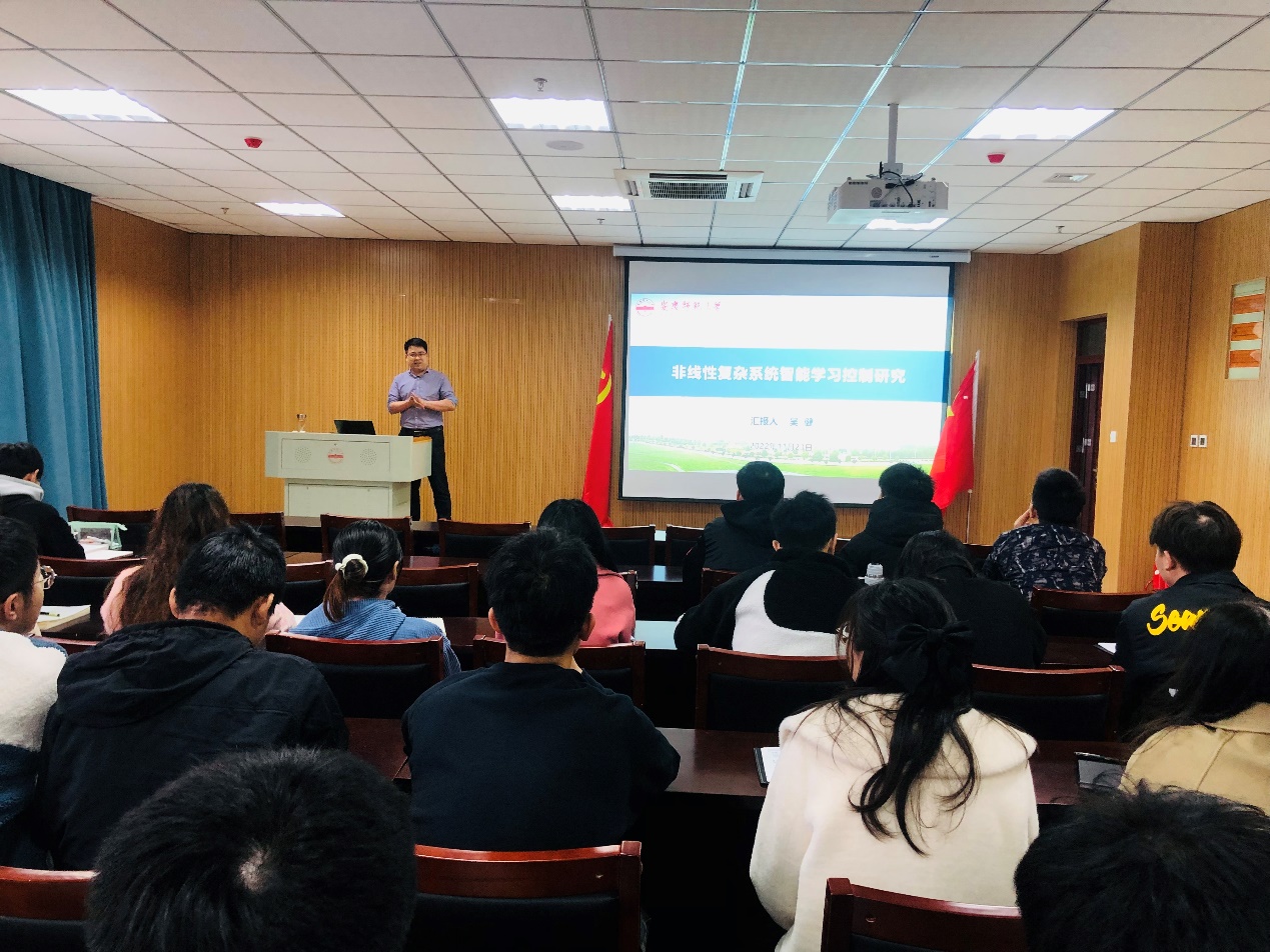 计算机与信息学院吴健副教授作“非线性复杂系统智能学习控制研究”学术报告